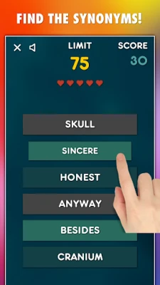 * Find Pairs - tap on two words on the screen that are synonyms to each other.
